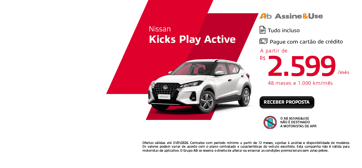 O AB Assine&Use é o serviço de assinatura de carros do Grupo AB. Com este serviço inovador, você pode desfrutar dos melhores carros da Nissan e Volkswagen sem precisar comprar um veículo.