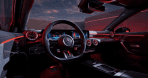 O sofisticado interior AMG, com a estrutura esportiva e o sistema de infotainment MBUX, intensifica a conexão pessoal entre o motorista e o veículo. Os marcantes bancos AMG Performance ressaltam o caráter de corrida e estimulam uma posição do banco ativa, com apoio lateral fixo. O estofamento na combinação de couro sintético ARTICO/microfibra MICROCUT em preto é clássico e, com costuras decorativas duplas em vermelho, estabelece traços típicos da AMG.