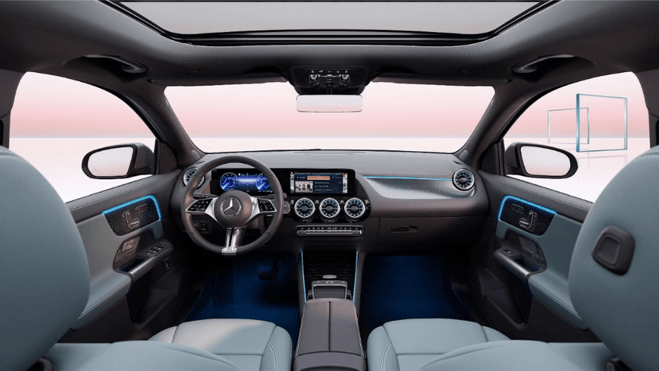 A primeira impressão conta: o design interior do EQA impressiona com a sua bem-sucedida síntese de interior espaçoso, high-tech e esportividade.