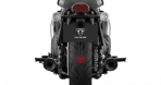 O inovador sistema de escapamento twin-skin, com atraentes silenciadores estilo zarabatana cortados e caixa de ar dupla exclusiva geram um ronco hot-rod característico, enquanto praticamente esconde o catalisador embaixo da motocicleta.